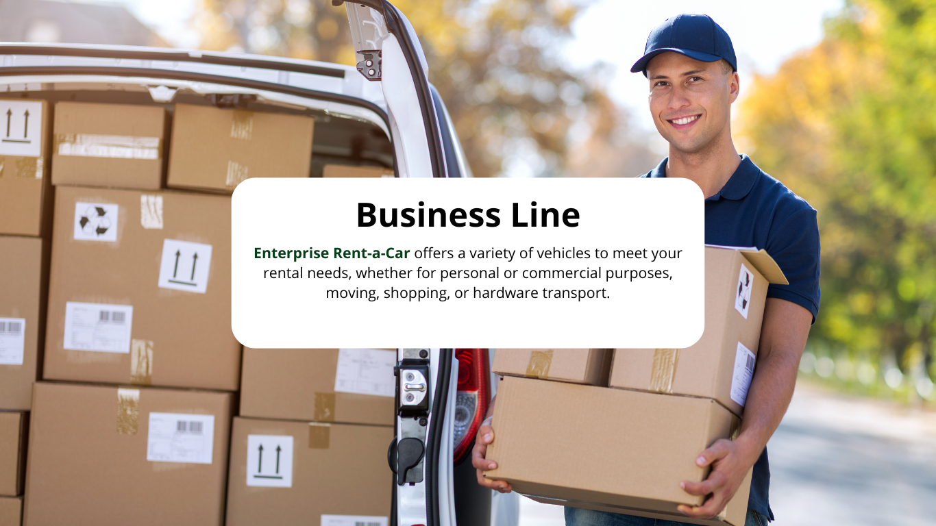 Enterprise Rent-a-Car offers a variety of vehicles to meet your rental needs, whether for personal or commercial purposes, moving, shopping, or hardware transport.